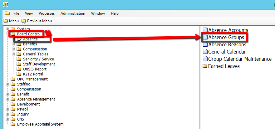 6. Select an Absence Group to modify