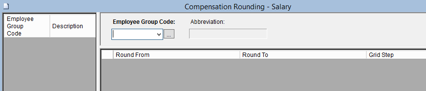 •The employee Compensation Rounding function allows you to create non-standard compensation rounding methods which can be used by the Salary/Allowance Update procedure. This table contains the rounded step values for both employee salary and allowances.