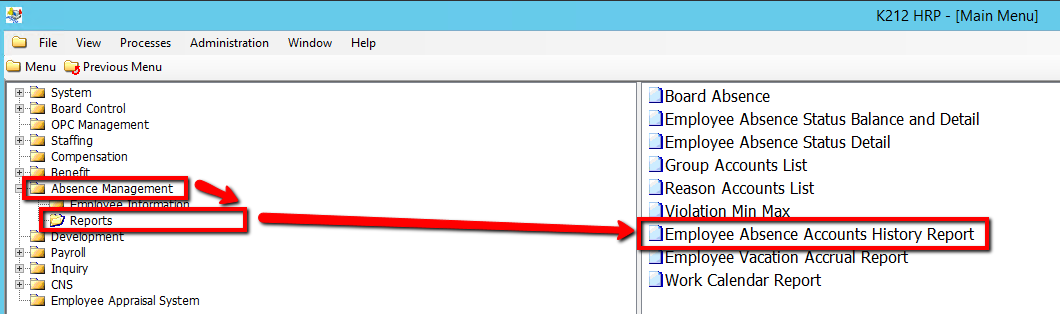3. Click on Employee Absence Accounts History Report