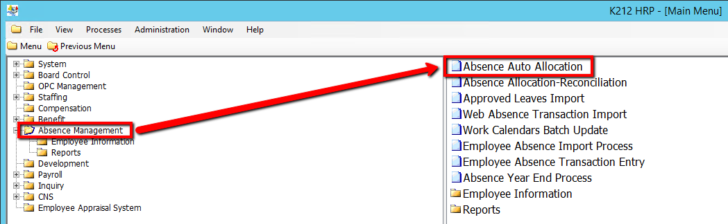 2. Click on Absence Auto Allocation
