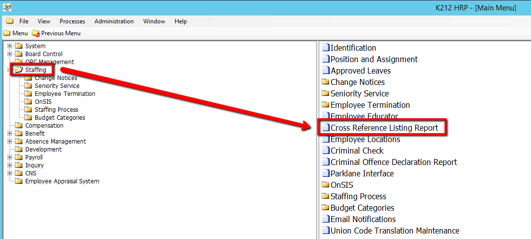 2. Click on Cross Reference Listing Report