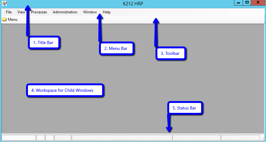 K212 HRP consists of one ‘parent’ window which may contain multiple ‘child’ windows.