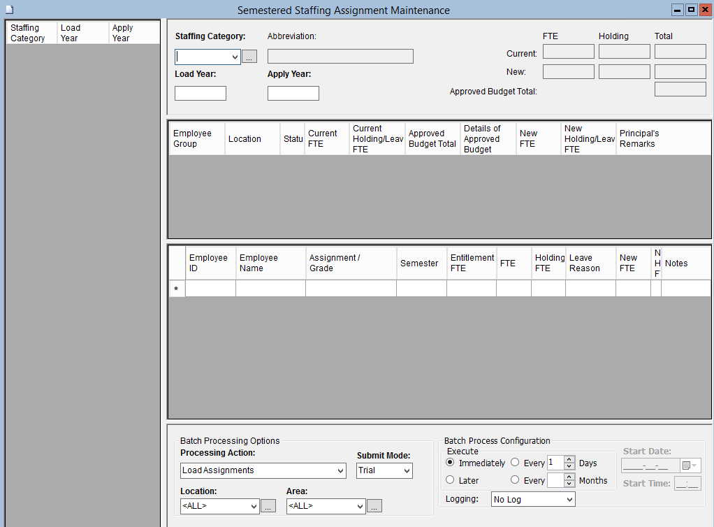 Use the following steps to Add/Modify/Apply Semestered Year Staffing Assignments: