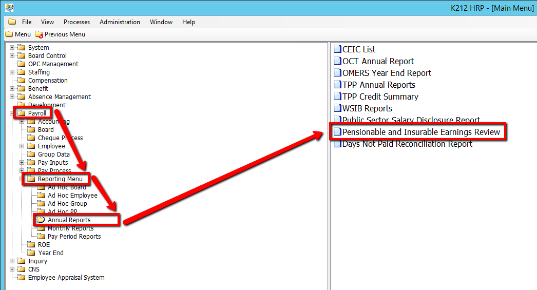 Use the following steps to Run a Pensionable and Insurable Earnings Review Report: