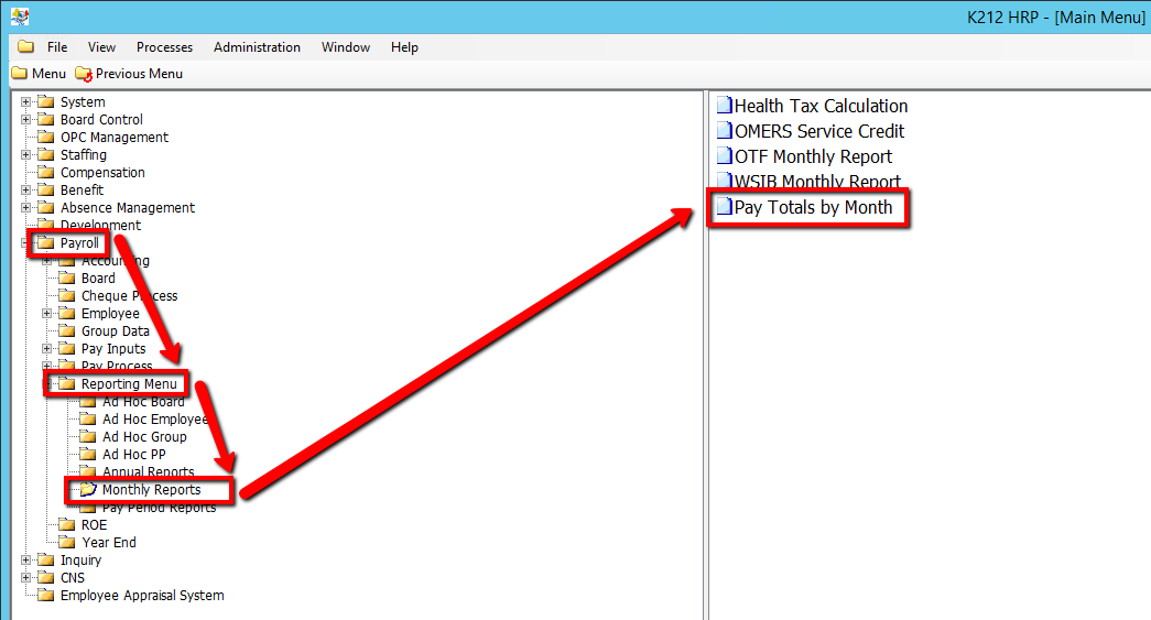 Use the following steps to Run a Pays Total by Month Report: