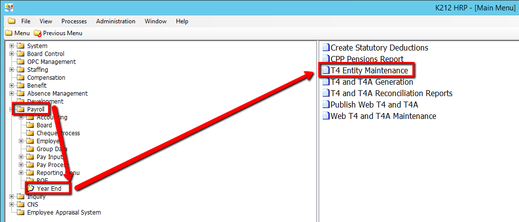 Use the following steps to Add/Modify T4 & T4A Form Entities: