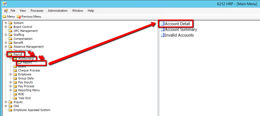 The Generate Account Detail Report function is used to create the Account Detail Report within the Employee accounting tables. This procedure should be run upon successful completion of the pay run.