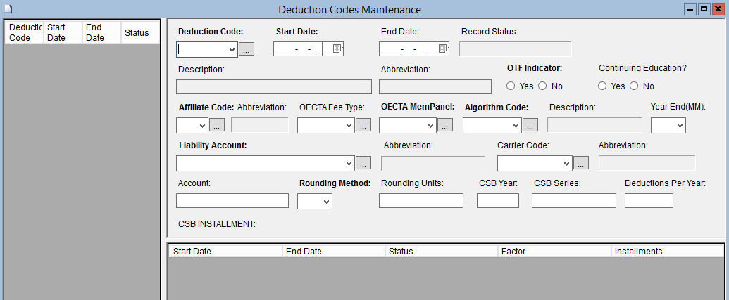 6. Select a current Deduction Code to modify or Select New at the top of the menu screen to add a new code