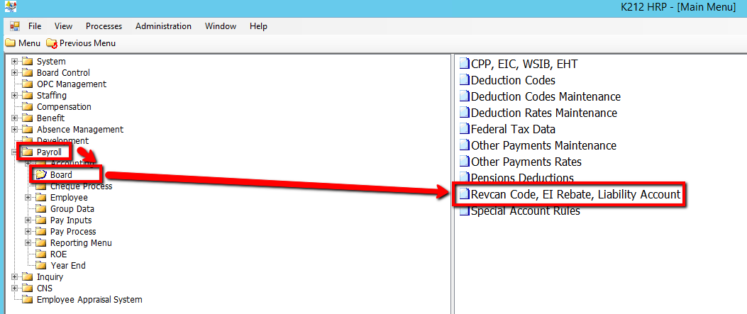 3. Click on REVCAN Code, EI Rebate, Liability Account