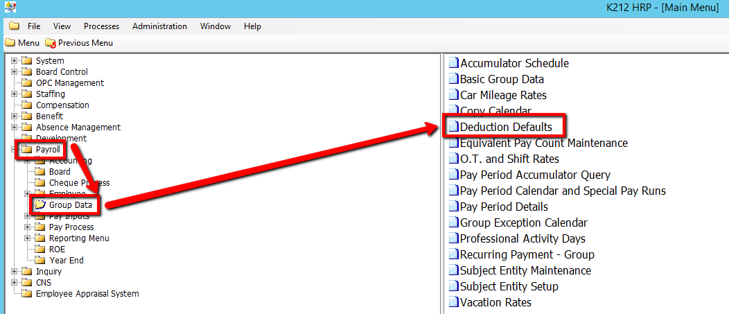 3. Click on Deductions Defaults