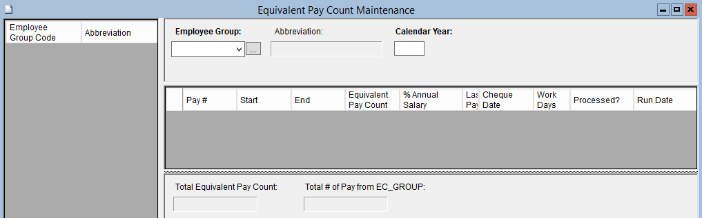 3. Click on Equivalent Pay Count Maintenance