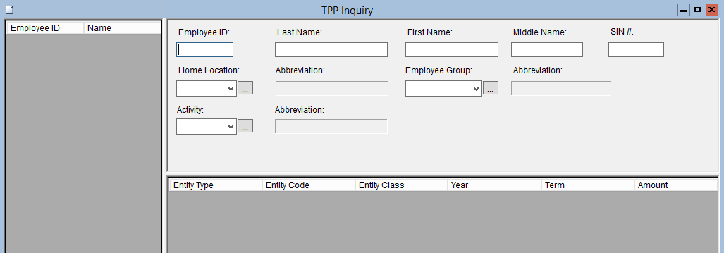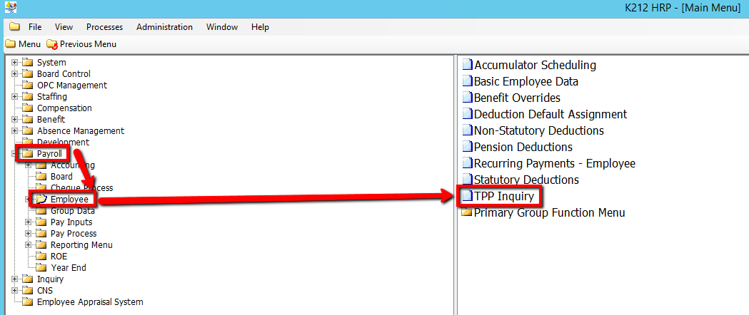 The TPP Inquiry module is used to make inquiries into an Employee's year-to-date TPP contributions, TPP Gross and the number of TPP service credits being accumulated.