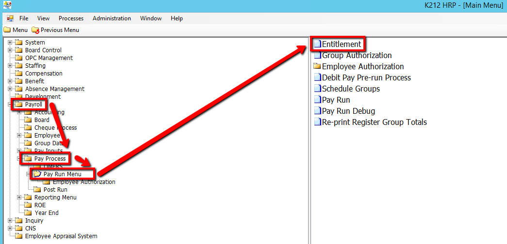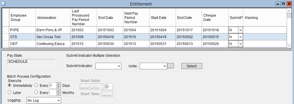 5. Select an Employee Group to run Entitlement for