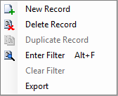 9. Right-click the grey grid below the Entity Type column and Select New Record to add a new record