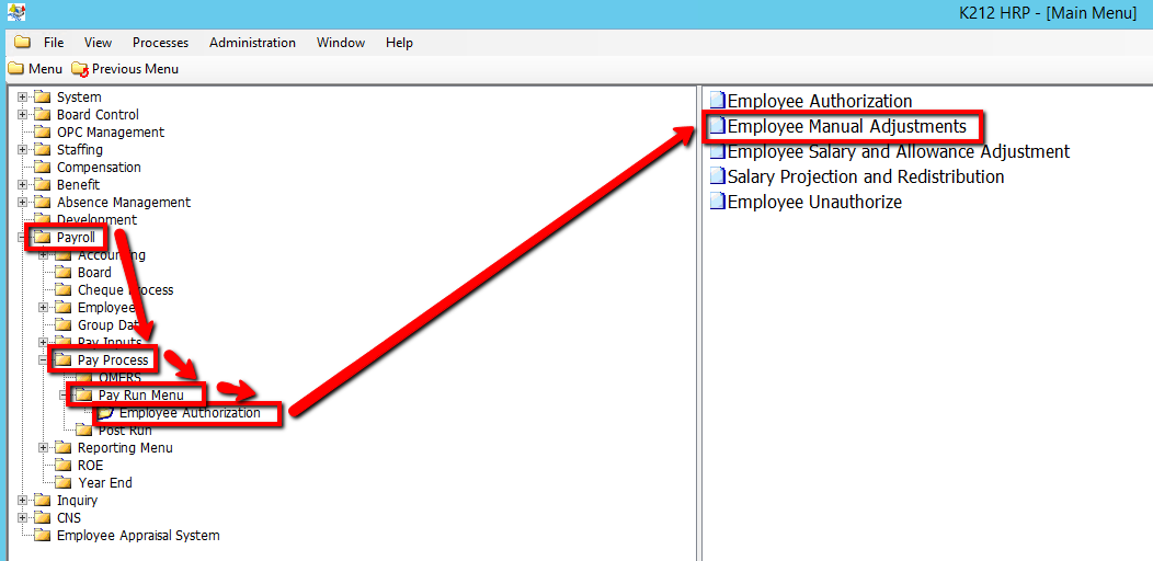 5. Click on Employee Manual Adjustments