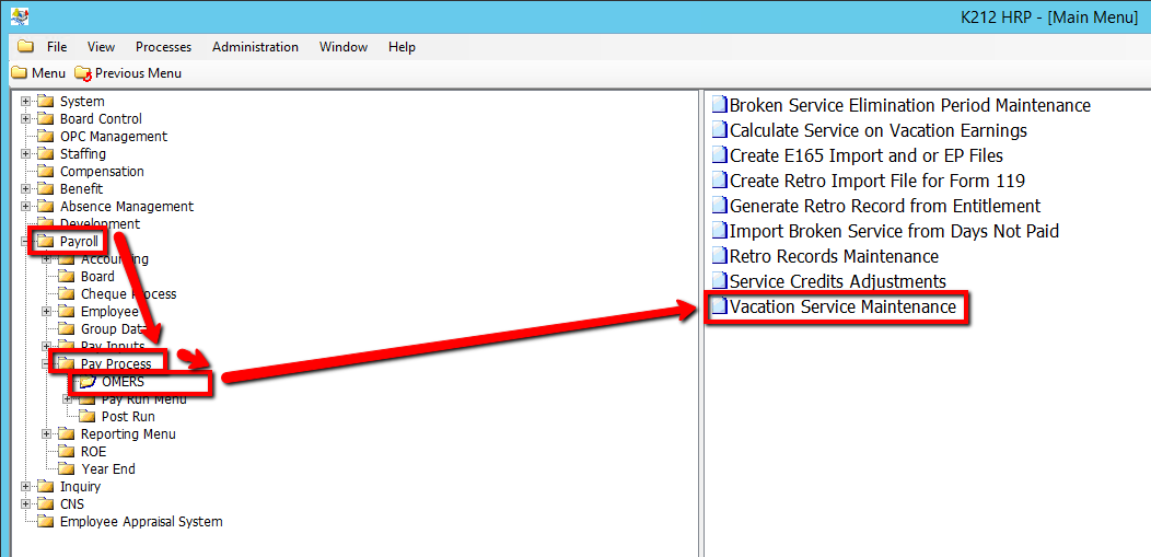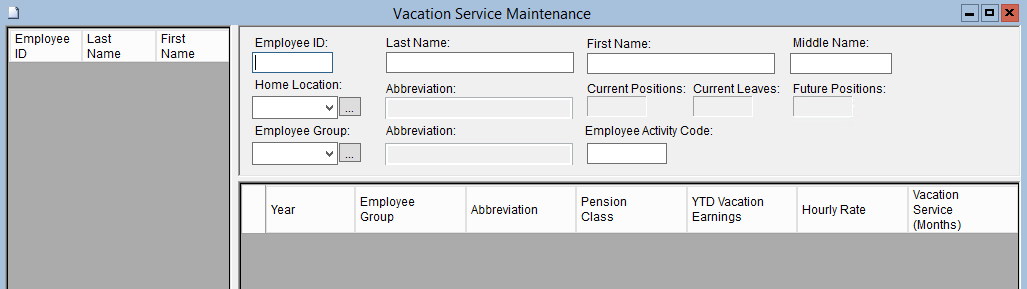 This screen is used to add, modify or delete OMERS Vacation Service records for an Employee.