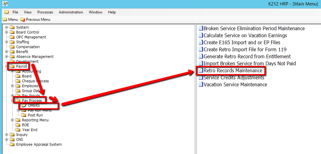 Use the following steps to Add/Modify OMERS Retro Pay Records:
