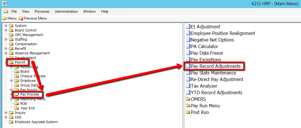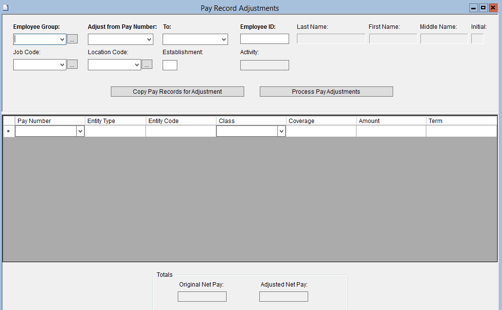 Use the following steps to Add/Modify Pay Record Adjustments: