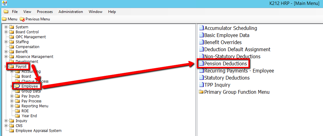 Use the following steps to Add/Modify Pension Deductions (Employee):